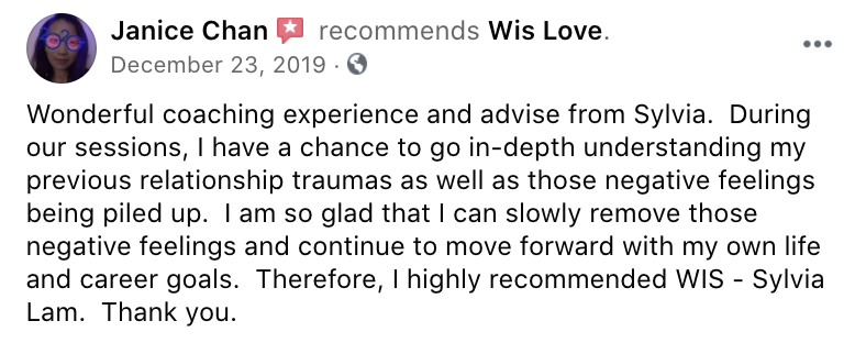 在我每一次感情受到傷害之後,我並沒有真正去處理好自己內在的傷口,而當時選擇用來療癒自己的方法,就是盡快開始一段新戀情,我以為用這個方法就可以走出那些傷痛,但不知為何每次拍拖去到最後都總是分手收場,而且不知為何每次分手的原因都和上一段感情的分手原因很相似,