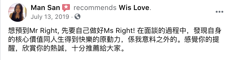 去尋找那個對的人,而很重要的一點就是,首先你自己也要先成為那個對的人,然後自然就可以吸引一個真正適合你的對的人去到你身上。 而當你在自己人生𥚃都成為一個對的人的時候,自然在你其他的人生範疇裡都會吸引一些對的人和事去到你的身上。