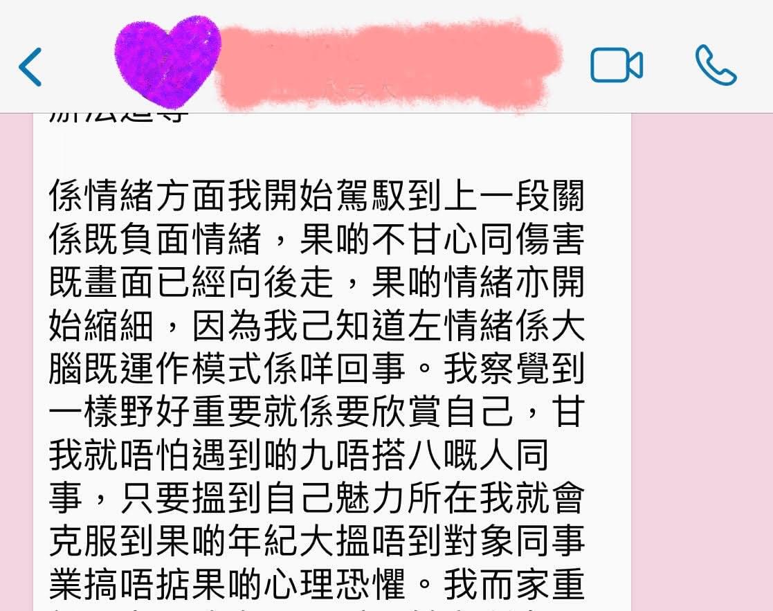 在最後一次情傷之後我真的跌得很痛,覺得自己好像跌入了一個人生谷底。那段時間自己的狀態真的很差及很多的負面情緒,甚至也影響了我人生其他的範疇,例如工作和健康。